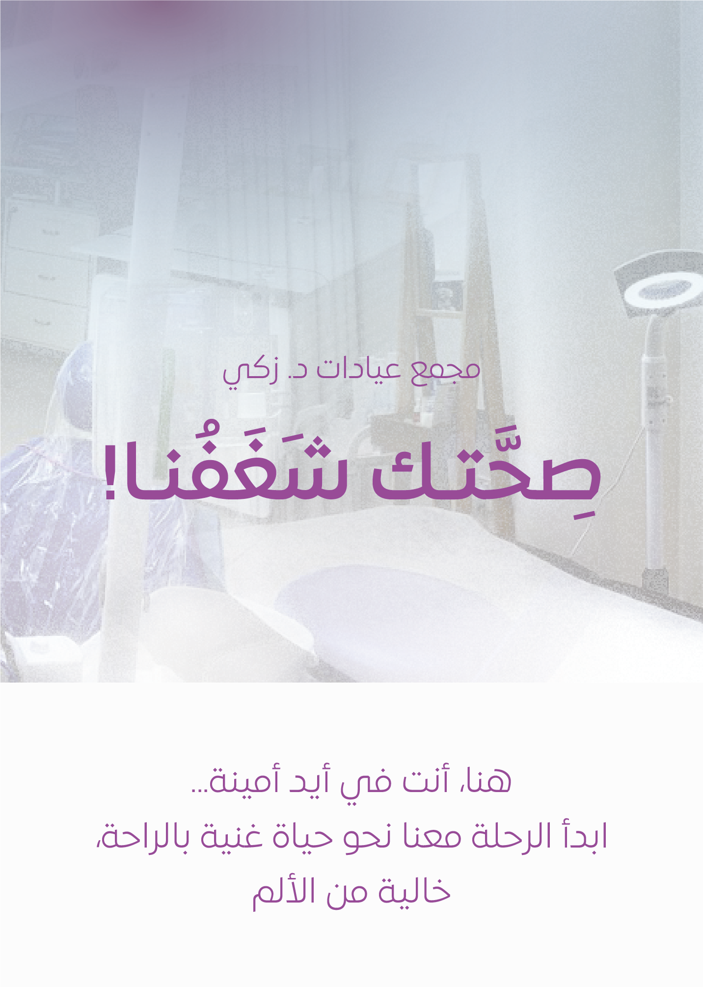 نحرص في عيادات د. زكي على تقديم خدماتنا لك ضمن بيئة مرحبة. لا يكتفي طاقمنا بالاحترافية، بل يعمل بجد وبكل ودّ، لتحصل على رعاية متكاملة بمختلف التخصصات.